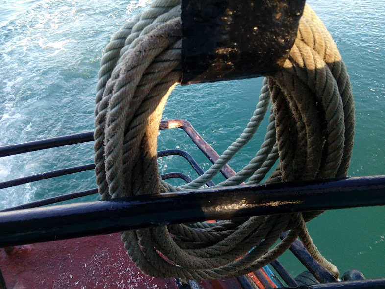I walked through the centre of town on the path that passes for the high street, admiring the tiny houses and the imaginative gardens. I walked down to the beach and turned east, walking along the beach. I followed the only other footprints in the sand – one barefoot human and one dog! I walked for over 2 hours along the deserted beach and didn’t see a living soul except for some sea birds and some passing fishing boats navigating between the islands in the distance. After walking through the backstreets to see more of the town, I emerged on the north-side beach and picked my way through buoys, upturned boats and seaweed back to the harbour where I joined the locals for a 10 am beer in the harbourside bar! I felt a bit out of place but no-one bothered me.